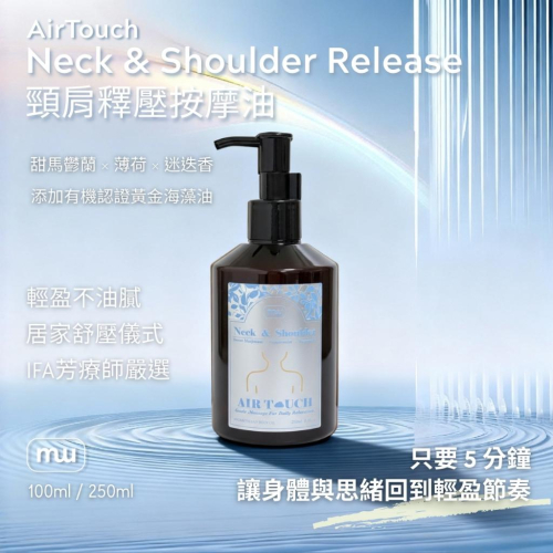 MW精油工坊|AirTouch|Neck & Shoulder Release 頸肩釋壓250ml|居家肩頸舒壓|全植物