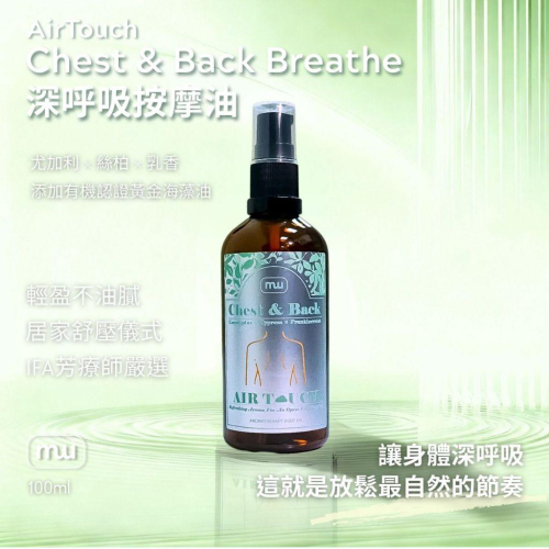 MW精油工坊|AirTouch|Chest & Back Breathe 深呼吸按摩油100ml|居家胸背舒展|筋絡舒暢
