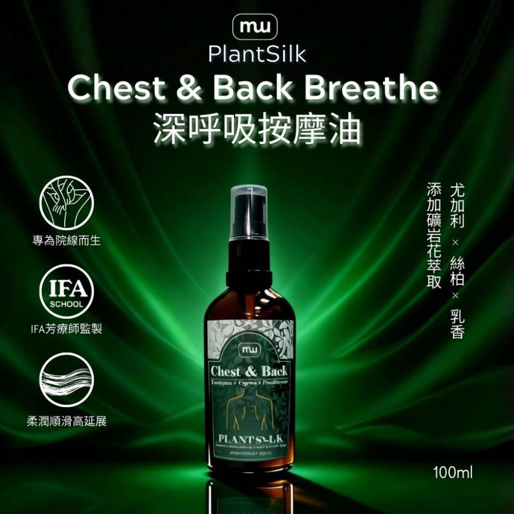 MW精油工坊|Plantsilk|Chest & Back Breathe 深呼吸100ml|長程按摩不累|頸肩釋壓按摩