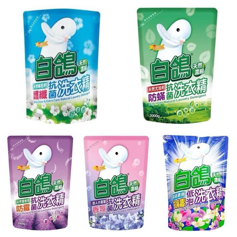 白鴿洗衣精補充包 天然濃縮洗衣精2000g 護纖 防螨 防霉 香氛 抗病毒洗衣精補充包