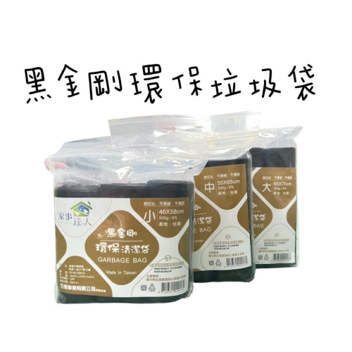 家事達人 黑金剛 黑色環保垃圾袋(3入) 台灣製造 耐拉扯 不易破 不漏底 碳酸鈣環保配方 焚化時無煙毒 掩埋時會自動分解 小款 46 X 58 CM 500g(一捲約11張) 中款 55 X 65 CM 500g(一捲約9張) 大款 65 X 75 CM 500g(一捲約6張) (數量為大約張數實際依重量為準) ※寄送限制: 萊爾富:單筆最多9包 超商/蝦皮店到店:單筆最多18包 18包以上僅能宅配 ‼️貼心提醒‼️ 1.訂單須滿$99(不含運費)才出貨,未滿$99將會取消訂單~ 2.超商取貨單筆訂單有限制最多5kg,下單時如有不確定歡迎聊聊提問 3.一般出貨時間為下單後1-3天,若遇到訂單量多時,會延長至2-4天,請見諒⋯ 4.收到包裹後,在拆封時請記得錄影,若商品有問題,即可使用影片來確認商品實際狀況 5.本賣場90%商品皆為現貨供應,並依照優先訂單並付款成功順序出貨。 6.若遇臨時缺貨會提前告知消費者 7.平常日下午兩點前訂單有現貨最快當天寄出,遇缺貨/六日/國定假日除外。