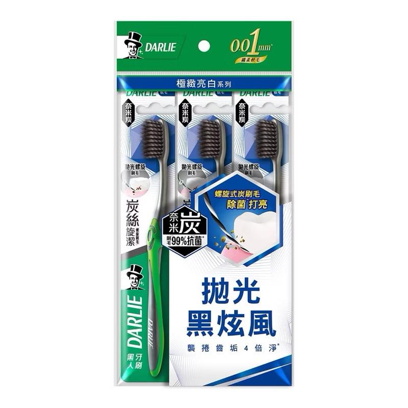 好來牙刷 0.01mm軟毛 炭絲旋潔牙刷3入 拋光黑旋風