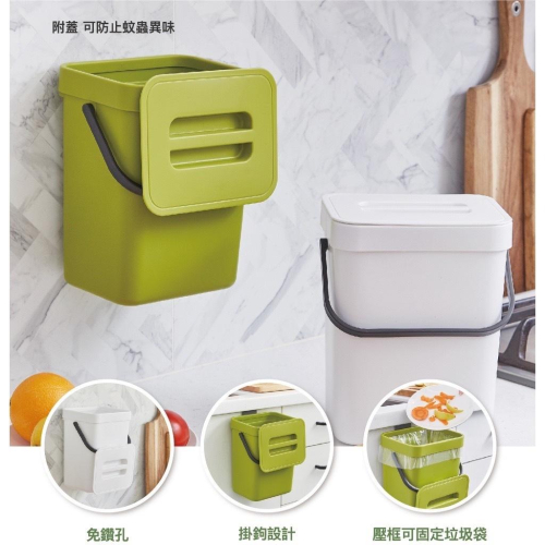 《商品特色》 無痕貼、掛勾兩用,方便丟廚餘 壓圈設計能固定垃圾袋 帶蓋防異味 提把設計 輕鬆倒垃圾 桶身加厚材質 耐摔設計 不只當垃圾桶,也可以承裝洗衣球、寵物飼料⋯等等,使用多元。 《商品資訊》容量:3L、5L 材質:PP 尺寸:請參照圖片 附件:掛勾及無痕貼 ‼️貼心提醒‼️ 1.訂單須滿$99(不含運費)才出貨,未滿$99將會取消訂單~ 2.超商取貨單筆訂單有限制最多5kg,下單時如有不確定歡迎聊聊提問 3.一般出貨時間為下單後1-3天,若遇到訂單量多時,會延長至2-4天,請見諒⋯ 4.收到包裹後,在拆封時請記得錄影,若商品有問題,即可使用影片來確認商品實際狀況 5.本賣場90%商品皆為現貨供應,並依照優先訂單並付款成功順序出貨。 6.若遇臨時缺貨會提前告知消費者 7.平常日下午兩點前訂單有現貨最快當天寄出,遇缺貨/六日/國定假日除外。