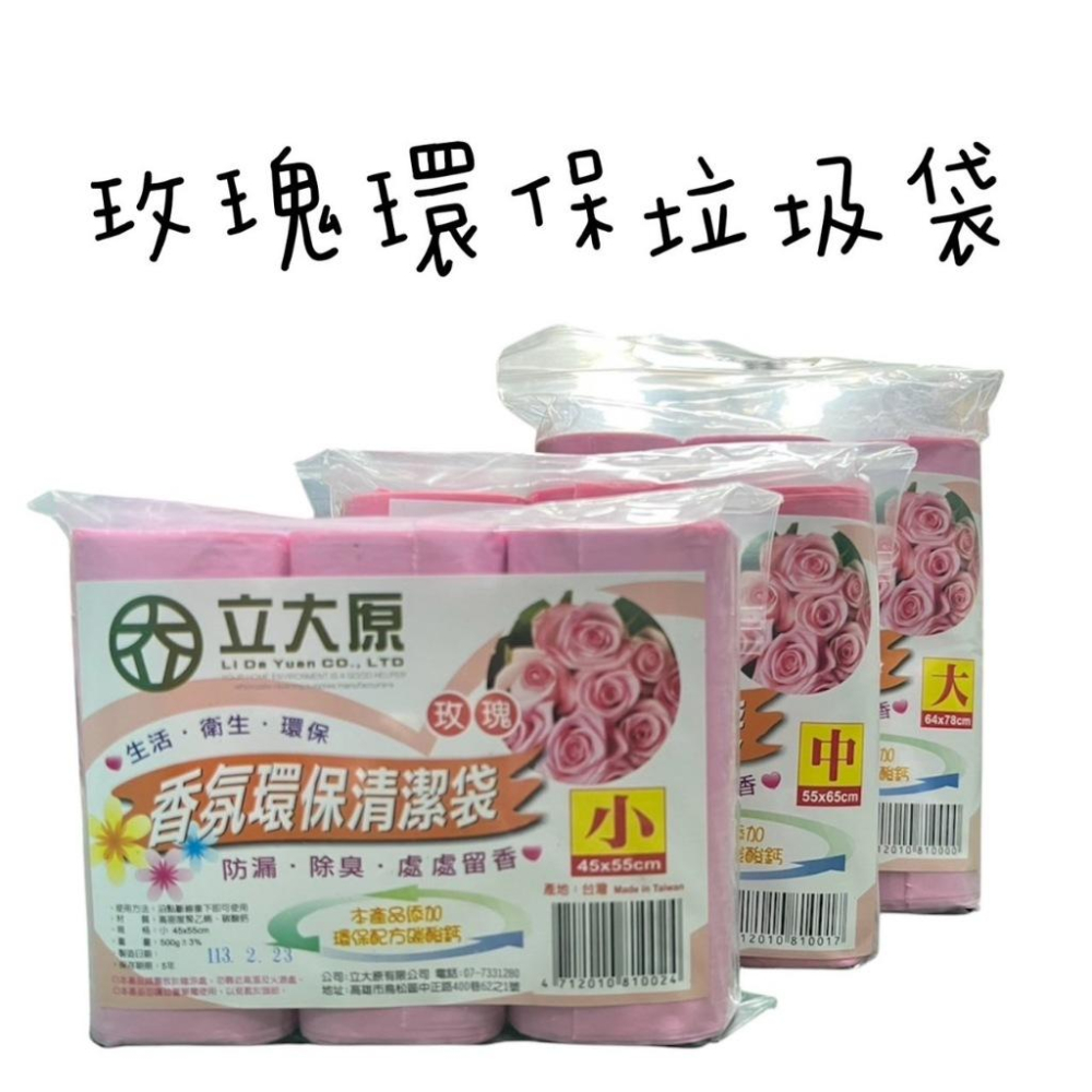 立大原玫瑰香氛垃圾袋 垃圾袋3入小中大 環保垃圾袋 清潔袋
