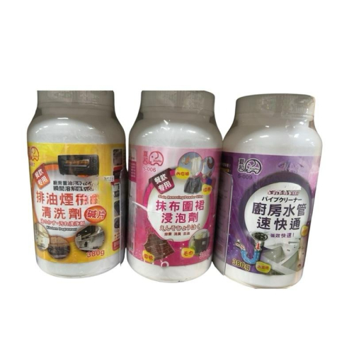 【排油煙機清洗劑】(強鹼性) 廚房救星,餐飲專用 廚房重油污無法清洗處,均能瞬間溶解! ※使用前請先戴上耐酸鹼手套及口罩! 用途:具強鹼性,清洗廚房重油污 適用:針對廚房油垢、重油污處、排油煙機、烤箱皆可適用 使用方法:本清洗劑倒入清水中混合即可 成份:碱片,固態,強鹼性 重量:380g±5% 保存期限:5年 保存方式:請妥善儲放在陰涼乾燥處,並置於兒童或寵物無法取得之處。嚴防誤食,並請勿傾倒放置 產地:台灣 急救方法:如皮膚或眼睛不慎接觸本產品,請立即以清水沖洗至少20分鐘以上,並盡速送醫;不慎吞食時,不可催吐,請先漱口,然後喝下1~2大杯清水,並立即送醫急救 【抹布圍裙浸泡劑】(中鹼性) 瓶裝方便好用,不沾您手! 徹底清除黴垢、頑垢、去油、消臭! 有效釋出大量活氧,快速消除累積污垢、去除異味,一次完成 ※皮膚敏感者,請戴上手套使用本產品 用途:清洗污垢、去除異味,去除油污 適用:使用過的抹布、圍裙、內衣褲、襪子、毛巾與浴巾 成份:過碳酸鈉,固態,硫酸鈉,中鹼性 重量:300g±5% 保存期限:5年 保存方式:請置於乾燥陰涼處,避免高溫、陽光直射、密封防潮,遠離兒童及寵物 產地:中國 急救方法:若不小心誤食,請立即飲用大量開水;若誤觸眼睛或皮膚,請立即以大量清水沖洗15分鐘,並請盡速就醫 【廚房水管速快通】(強鹼性) 強效快速疏通水管阻塞! 保持管道清潔通暢,輕鬆去油垢、去菜渣,完成水管保養 ※使用前請先戴上耐酸鹼橡膠手套及口罩! 用途:強效疏通水管阻塞、排除菜渣、油垢、有效潔靜 適用:硬質排水管,例如:硬管PVC塑膠、鐵質、銅質、不鏽鋼排水管 成份:NAHO強碱,固態 重量:380g±5% 保存期限:5年 保存方法:請妥善儲放在陰涼乾燥處,並置於兒童或寵物無法取得之處。嚴防誤食,並請勿傾倒放置 產地:台灣 急救方法:如皮膚或眼睛不慎接觸本產品,請立即以清水沖洗至少20分鐘以上,並盡速送醫;不慎吞食時,不可催吐,請先漱口,然後喝下1~2大杯清水,並立即送醫急救 ‼️貼心提醒‼️ 1.訂單須滿$99(不含運費)才出貨,未滿$99將會取消訂單~ 2.超商取貨單筆訂單有限制最多5kg,下單時如有不確定歡迎聊聊提問 3.一般出貨時間為下單後1-3天,若遇到訂單量多時,會延長至2-4天,請見諒⋯ 4.收到包裹後,在拆封時請記得錄影,若商品有問題,即可使用影片來確認商品實際狀況 5.本賣場90%商品皆為現貨供應,並依照優先訂單並付款成功順序出貨。 6.若遇臨時缺貨會提前告知消費者 7.平常日下午兩點前訂單有現貨最快當天寄出,遇缺貨/六日/國定假日除外。
