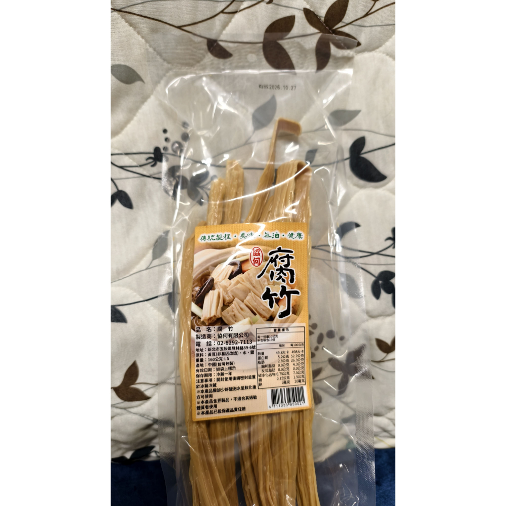 協何腐竹由協何有限公司精心製作,選用非基因改造黃豆,搭配水與鹽,經傳統工藝製成,保留了黃豆的天然香氣與營養。每包重160公克,產地為中國,並在台灣包裝,確保品質與新鮮度。