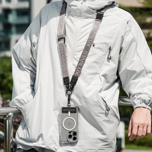 延續STARLUX|緞面飛行掛帶設計,此款多功能手機掛繩採用霧鉑銀搭配STARLUX緹花字樣,特殊材質在來自不同光源的照射下,透露出多變光澤,呈現出低調又精緻的質感。掛繩粗細適中,配戴時舒適無壓力,另還附有STARLUX手機墊片可以輕鬆將手機掛於掛繩上,多功能扣環亦可勾掛各式小物,是生活中必備的日常夥伴。
