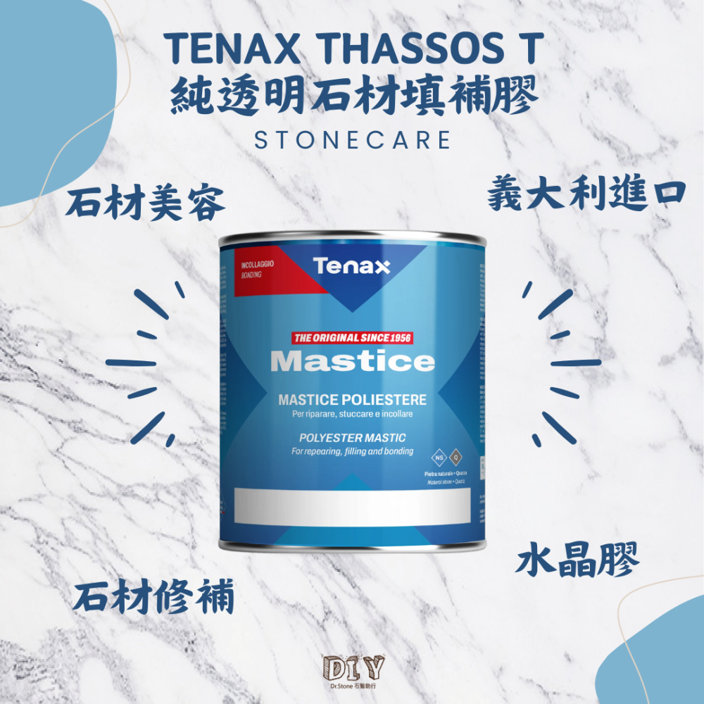 本產品為頂級THASSOS T純透明色的石材填補膠,極度耐黃變以及極高的透度讓此款膠能修補於任何色系,包含一般天然石材或人造石材,在拋光石英磚上也適用,且研磨後會有有高光亮度,適合各家美容、研磨填補、修補時使用。適用於所有石材種類以及磁磚拋光磚(含地壁磚),也可用於浴室內。