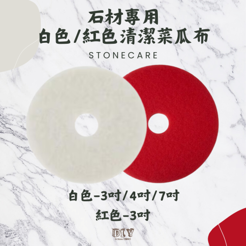 紅色菜瓜布比白色菜瓜布更為鋒利一些,專門用於花崗石及拋光磚(磁磚)上,對於較硬之石材的效果有更好的成果。