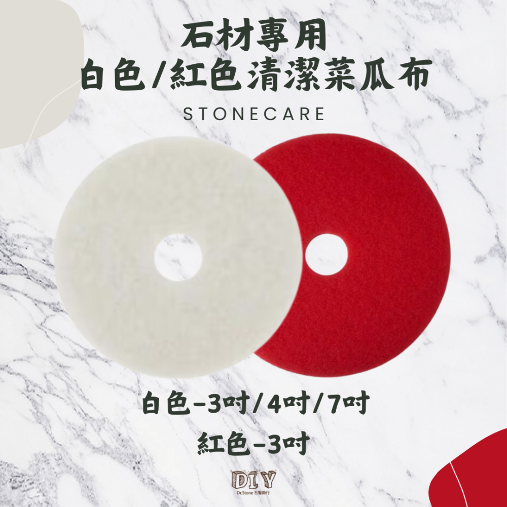 白色菜瓜布與一般市售菜瓜布不同之處,較細緻且較柔軟,專門用於大理石石材清潔與拋光上,製作較細緻,不會刮傷石材。