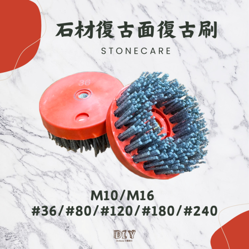 此款復古刷用於石材復古面修復,從粗番#36到細番#240,刷完會讓石材變回粗糙復古效果並且表面呈現細緻的狀態,可搭配AGER石材濕色防護劑讓原本的石材恢復觀賞性。