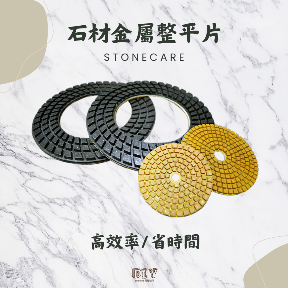 本產品為一通用型金屬整平片,可應付幾乎所有種類的石材,不須依照石材品種更換磨片,主要用於石材不平整的狀況,研磨料本身含有金屬顆粒,增加鋒利切削的利度,讓整平可以更有效率,節省時間。此磨片壽命耐久,利度讓您在面對多種石材都可輕鬆應付,且適用於各種中大型研磨機以及小型手持式研磨機。