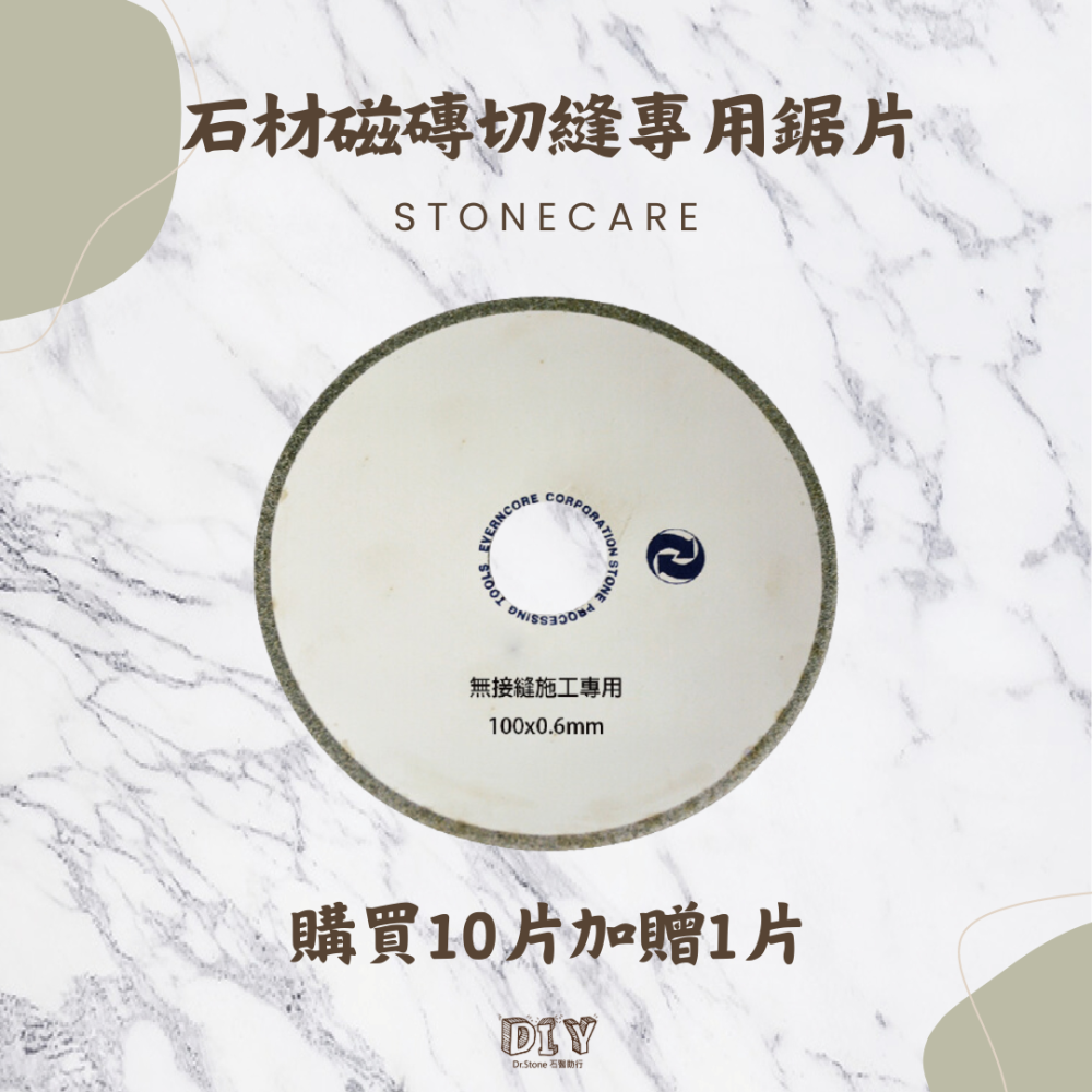 此款鋸片專為切縫設計,厚度0.6mm,硬度偏軟,適用各式石材切縫。乾濕兩用皆可,但乾式切法較容易產生塵埃,請務必攜帶口罩施作。