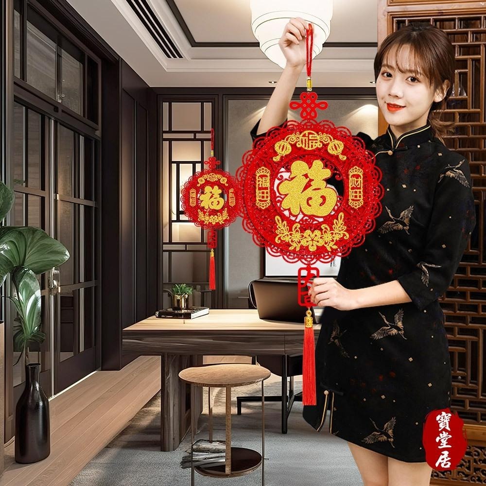 寶堂居 新年吊飾簍空雕花立體款-福旺財旺單入#215(元旦掛飾場景布置室內春節過年掛件)