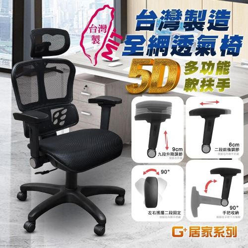 免組裝台灣製人體工學透氣椅5D軟扶手-雙層網布坐墊(電腦椅,電競椅,網布椅,網布坐墊,辦公椅,主管椅)