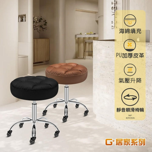 G+居家 免組裝 動感滑輪升降萬用椅 2吋純黑輪(美容椅/移動工作椅/萬用椅/足療用椅/手作工藝座椅)