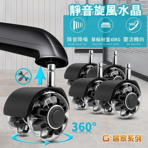 G+居家 辦公椅2吋萬向PU輪5入組 椅腳輪/萬向輪/免工具安裝 炫風水晶/晶透水晶/全黑帶亮圈/有飾蓋/無飾蓋