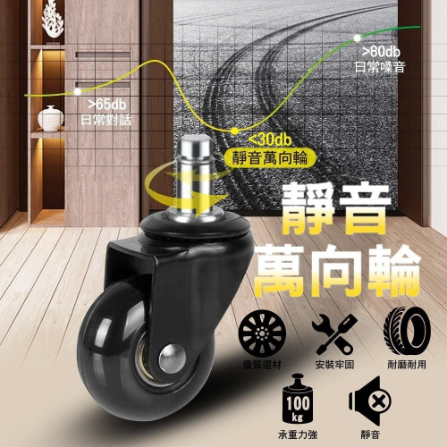 滾珠+雙軸承設計,鋼材電著,堅固耐用,低噪音更滑順,PU材質不傷木質地板