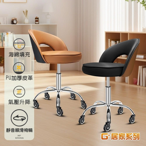 G+居家 免組裝 舒活護腰加大坐墊升降萬用椅-2.5吋透明黑(靠背椅/櫃台椅/美甲椅/萬用椅/工作椅)
