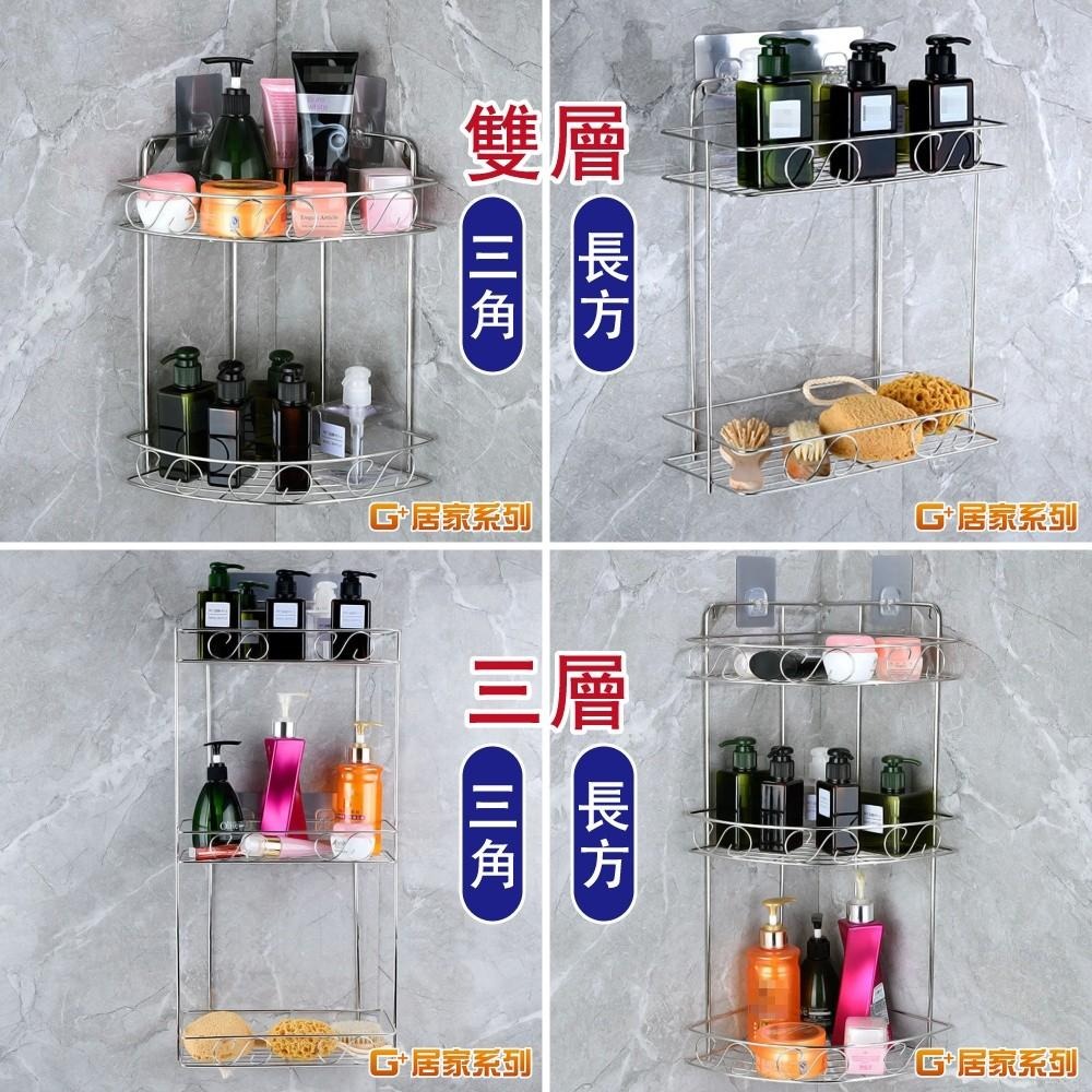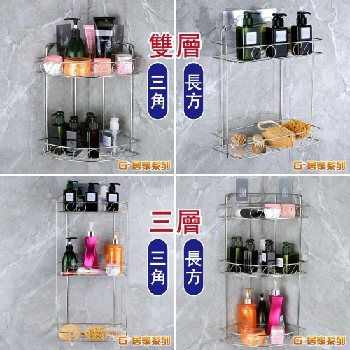 三角雙層內容物:置物架x1、鑽牆螺絲組x1、無痕貼x2