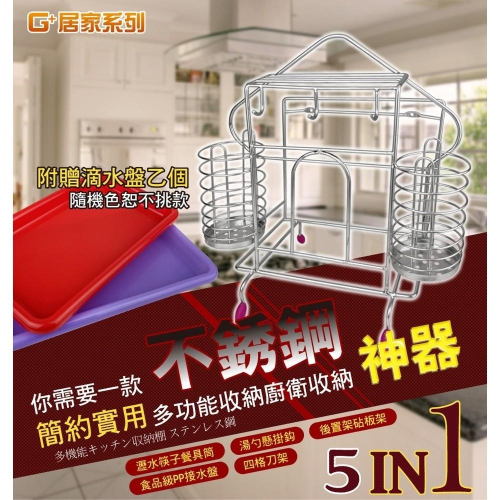 G+居家 304不鏽鋼菜刀餐具砧板收納架(附滴水盤)