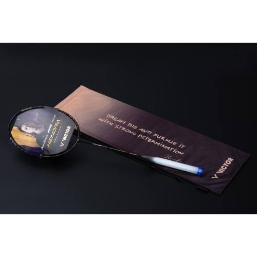 塞提阿萬特別版簽名球拍 ARS-HS PLUS HENDRA 設計融入塞提阿萬三大信念及簽名,拍框頂部七顆星形象徵七座世界冠軍的輝煌榮耀,特別版拍袋更印有塞提阿萬對職業生涯的總結,既是對所有羽球愛好者的祝福,也完美傳遞他羽球生涯的成就與精神。