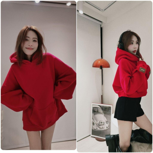 💗現貨短款粉、紅/長款紅、綠+預購💗6591/7031左左家情侶裝標籤刷毛帽T長版帽T/刷毛短版帽T上衣下半身失蹤閨蜜裝
