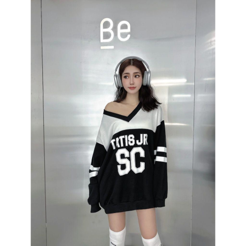 💗現貨黑💗3839美式撞色字母大學T