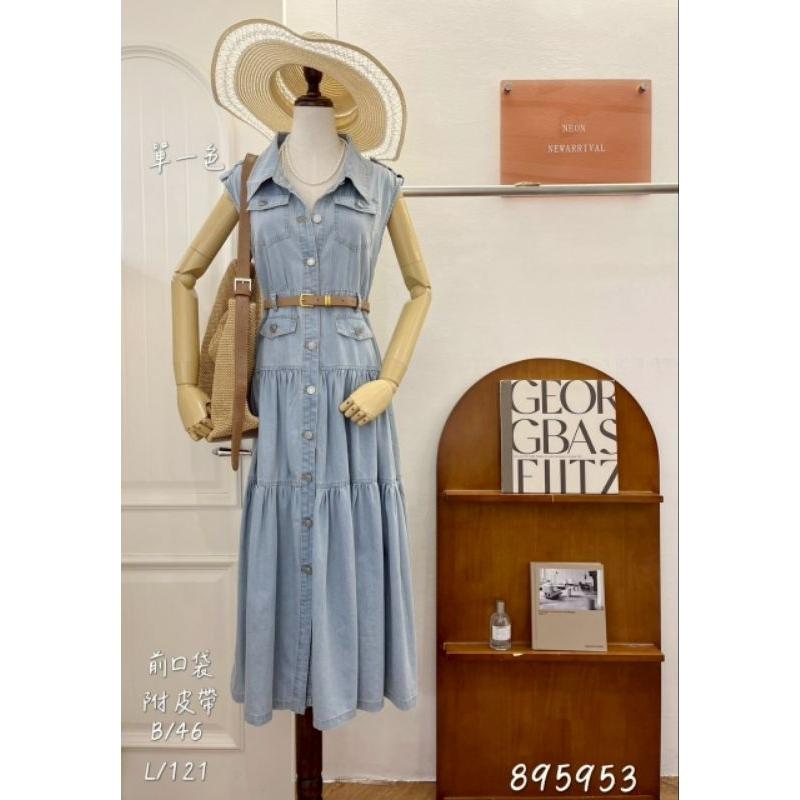❤️現貨❤️8959百搭背心牛仔長洋裝蛋糕長洋裝牛仔背心洋附皮帶