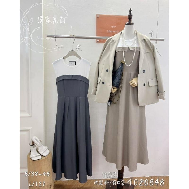💗現貨深灰/卡💗正韓10208品牌高訂高質感拼接西裝料長洋裝氣質長洋裝約會長洋裝