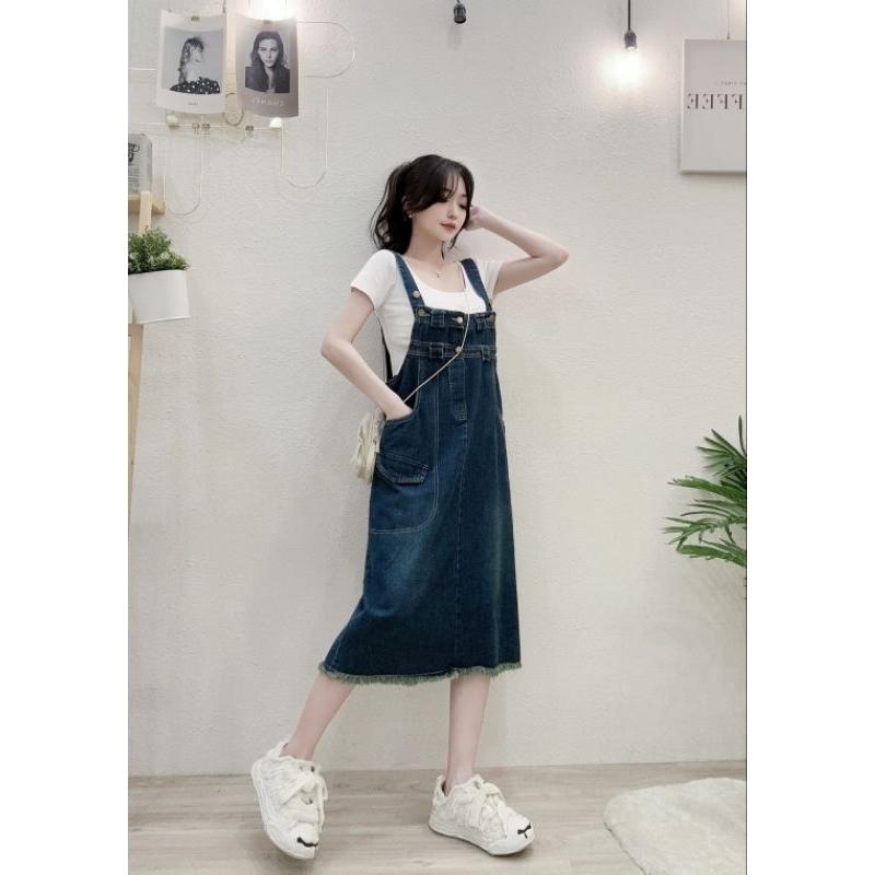 ❤️現貨深藍/淺藍❤️0933減齡趕牛仔吊帶裙大口袋牛仔吊帶長裙裙