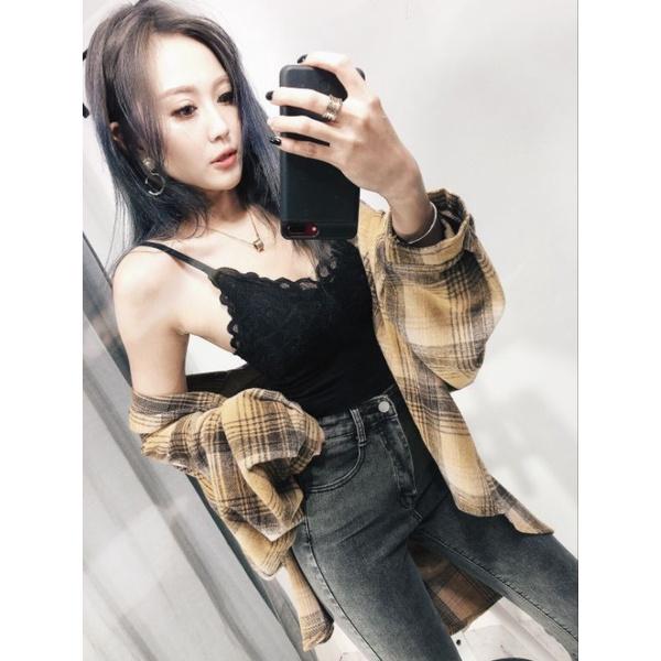 💗現貨黑/粉💗緹花蕾絲背心細肩帶背心