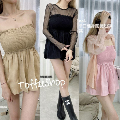 💗現貨黑/卡💗!!免運費!!63671莫德里時光平口鬆緊連身褲連身短褲渡假穿搭約會穿搭