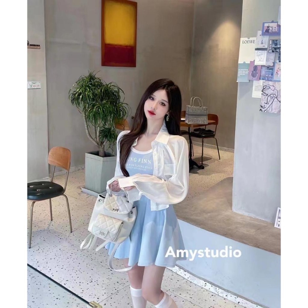 📍韓標🇰🇷華夫格POLO領上衣+短裙套裝 顏色:藍/粉 數量:各1