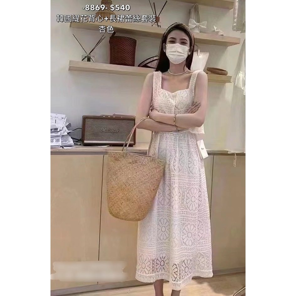 📍蕾絲緹花短版背心+長裙套裝