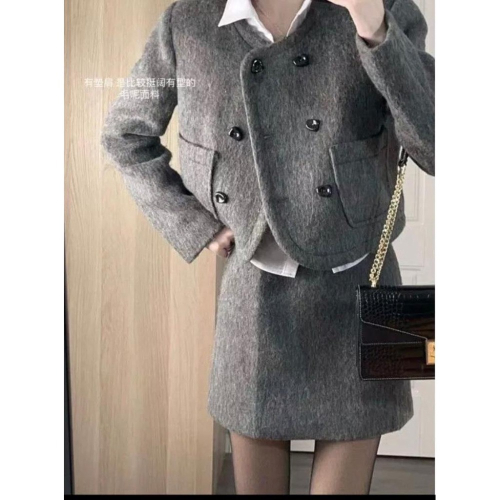 📍毛呢內刷毛小香短裙套裝