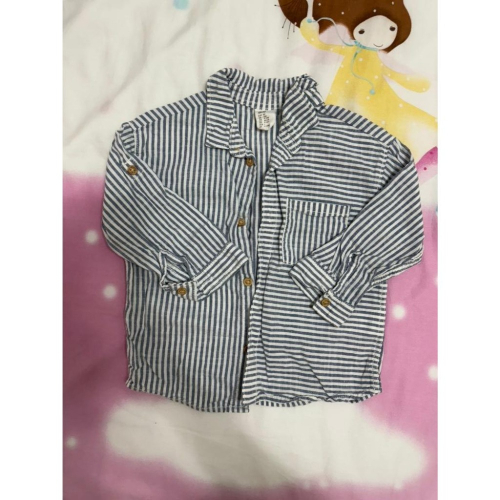 二手 現貨 H&M 男童條紋棉麻襯衫