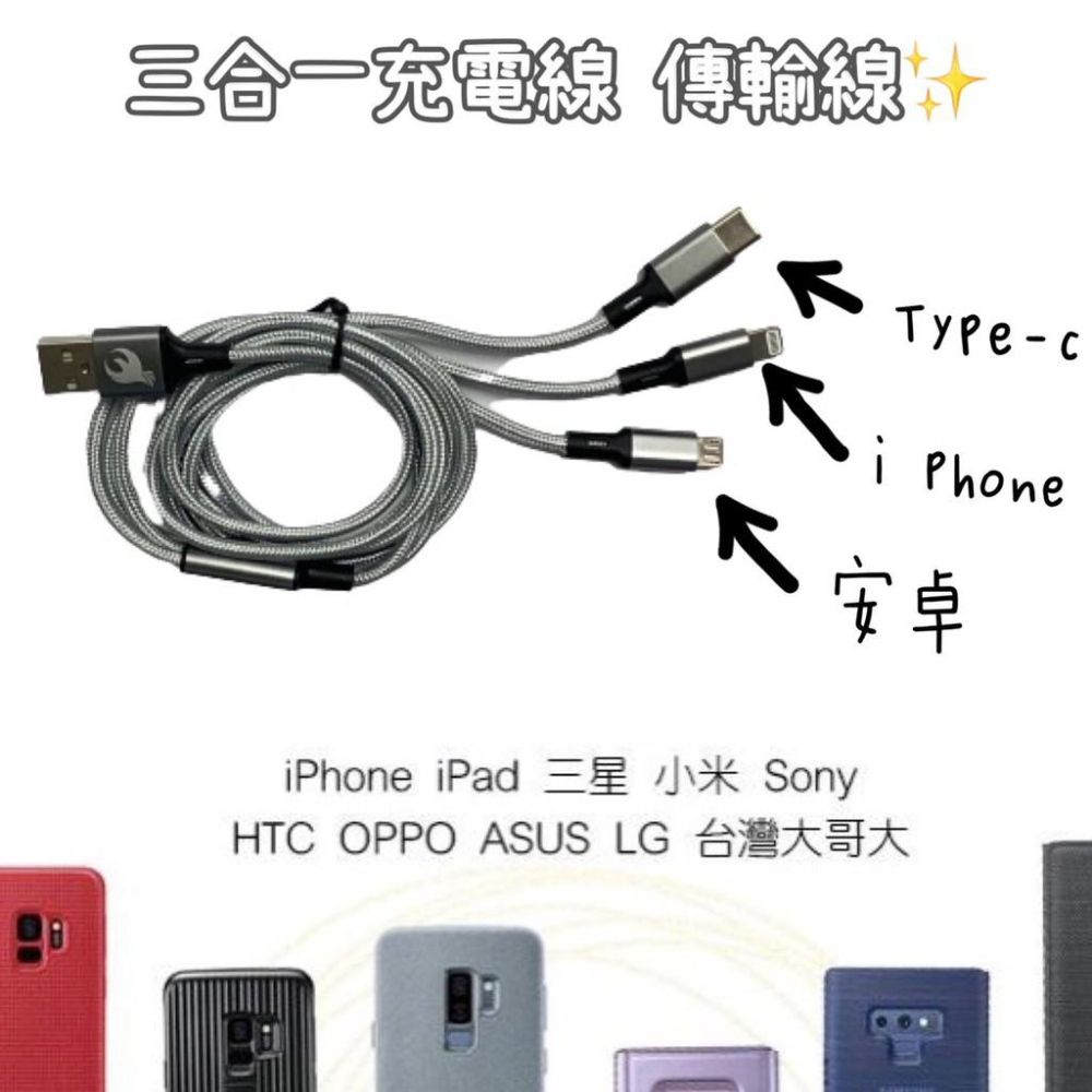現貨 三合一 數據線 3合1充電線 傳輸線 USB充電線 三頭充電線 蘋果 安卓 TYPE C 新品