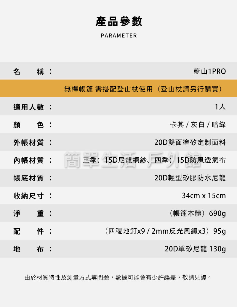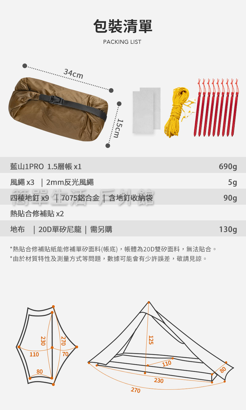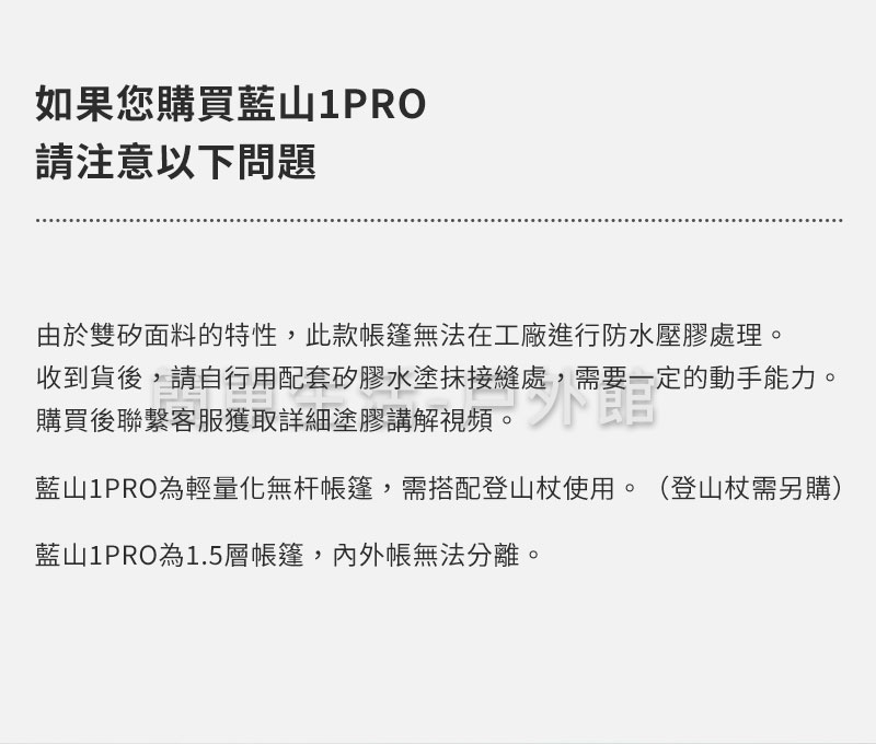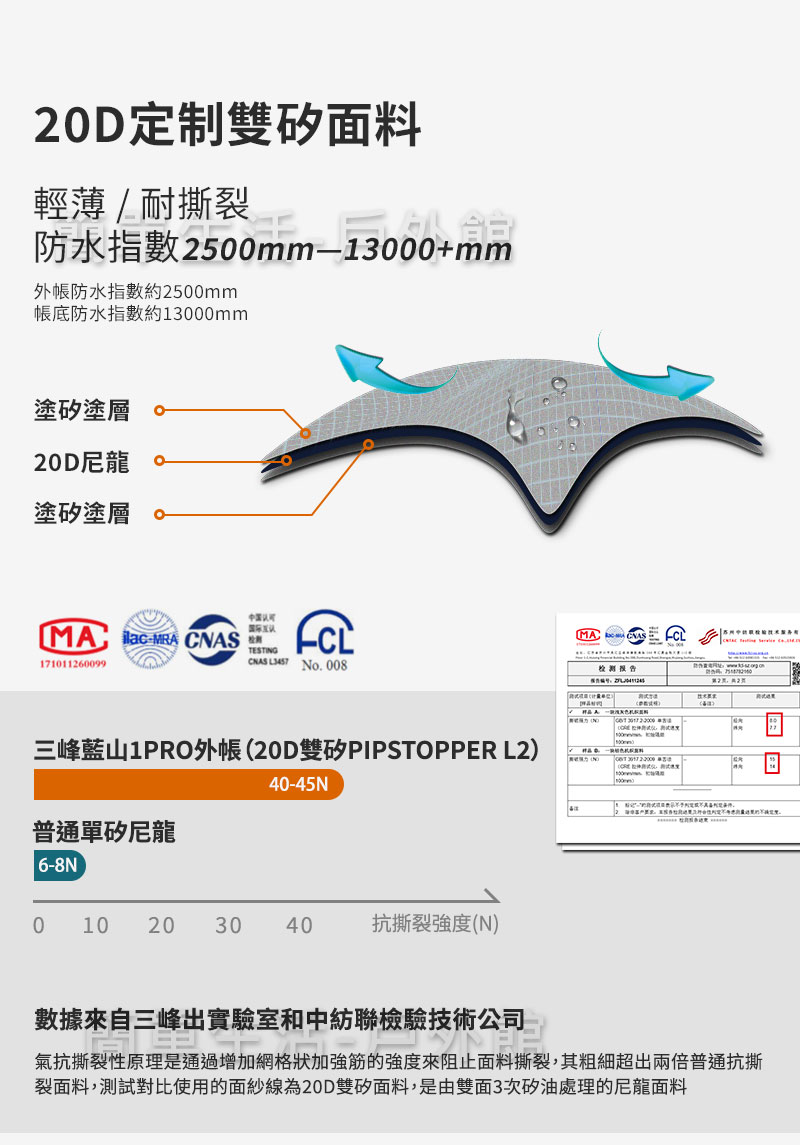 *** 由於雙矽面料的特性,此款帳篷無法在工廠進行防水壓膠處理。