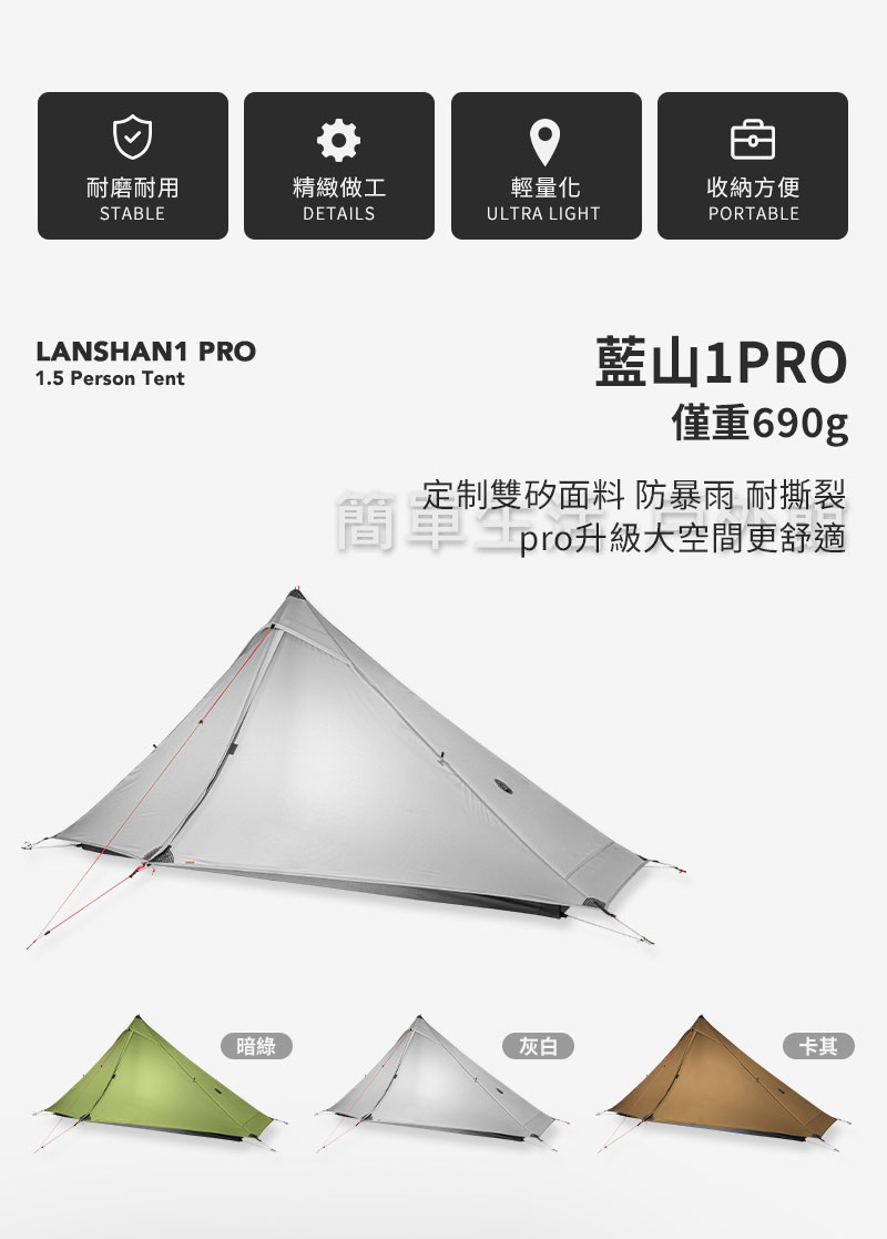 【簡單生活】台灣現貨 三峰出 藍山1pro 1.5層 單人 超輕量 20D 非自立 無桿帳 無杆帳 帳篷