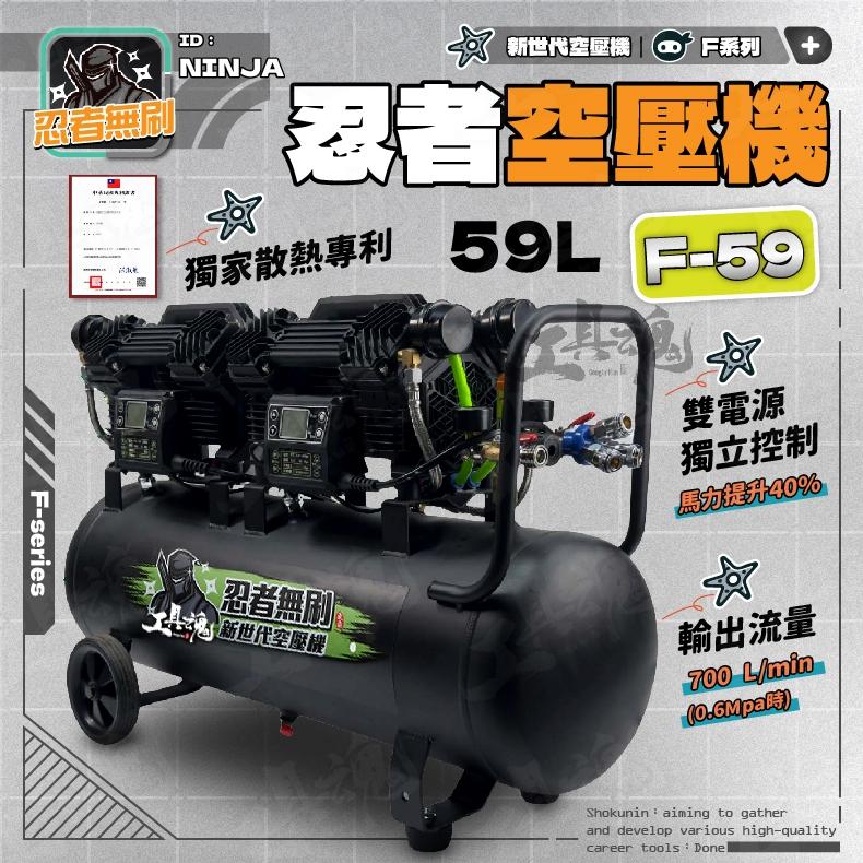 全新 F59 忍者無刷 雙主機空壓機 噴漆 汽車美容 雙主機 馬力提升40% 59L 38Kg 空壓機