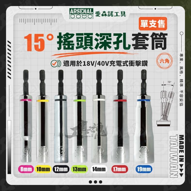 【工具魂】愛森諾工具 單支 8-19mm 搖頭深孔套筒 15度搖頭套筒 六角深孔 高扭 18V 40V Arsenal