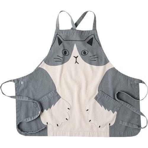 【ANDPACKABLE】賓士貓圍裙|日本設計 貓咪插圖款 實用大口袋 中性穿搭風格|日系生活選物