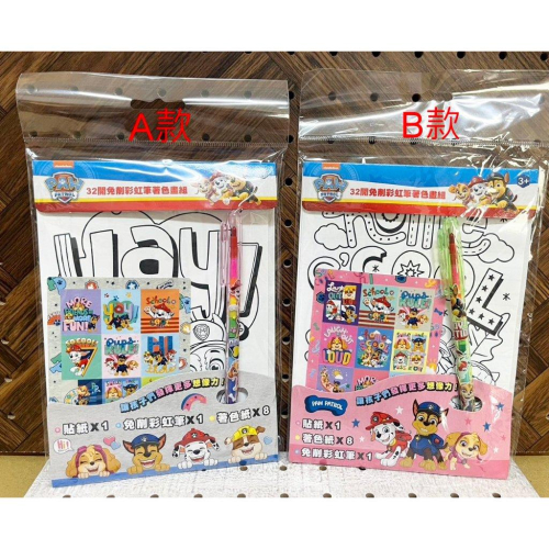 【快樂童年精品】正版授權~新款 狗狗汪汪隊 32開著色紙+免削彩虹筆畫畫組