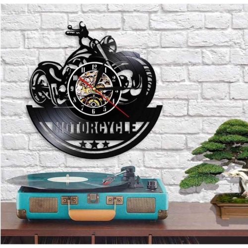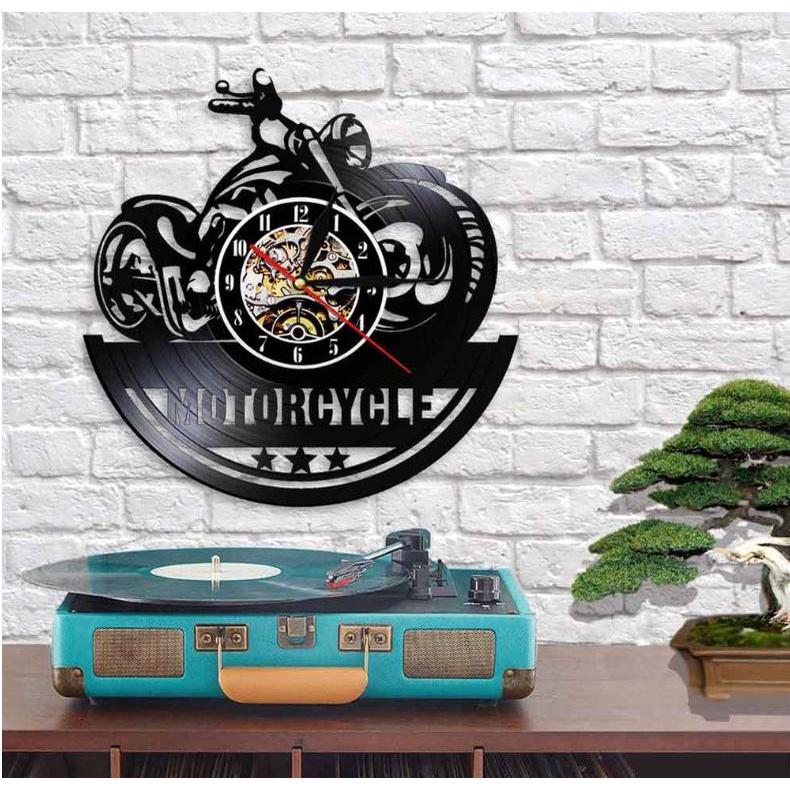 【快樂童年精品】心中有股重機的魂~黑胶唱片掛鐘 創意時鐘 重型機車/摩托車造型牆鐘.秒針靜音 ((帥爆款))