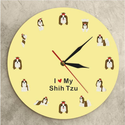 【快樂童年精品】CZ-084 優雅美麗西施犬 家居 居家 臥室 客廳裝飾 靜音牆鐘 時鐘