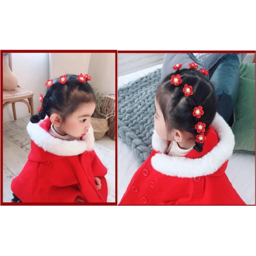 【快樂童年精品】超值超划算~新年小紅花 頭繩兒童花朵髮圈 扎頭髮皮筋 女童寶寶髮繩不傷髮 (一組10個)