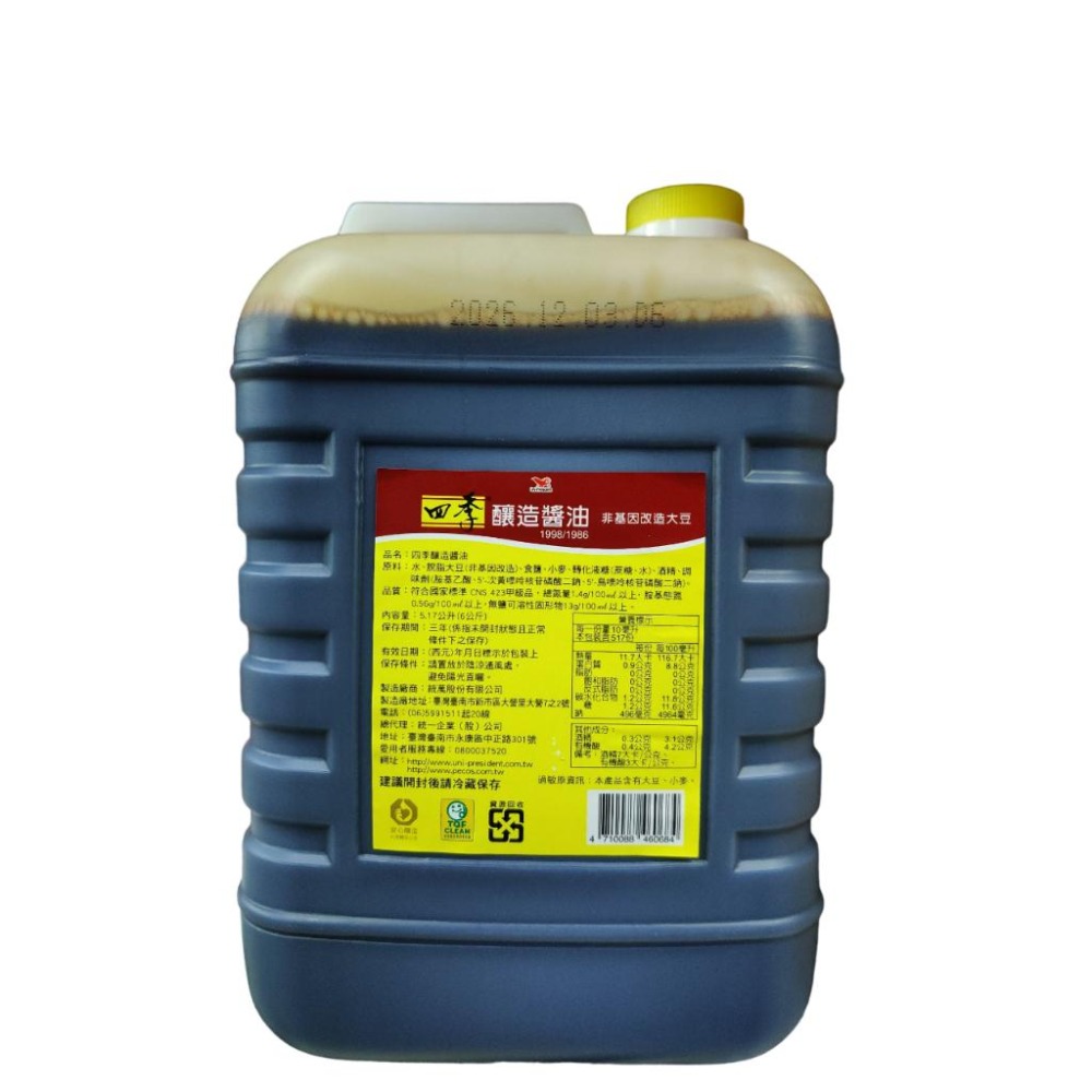 ☑四季釀造醬油嚴選非基改大豆,不添加防腐劑