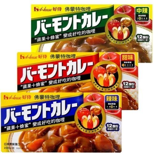 好侍佛蒙特咖哩塊(甜味)、好侍佛蒙特咖哩塊(中辣)、好侍佛蒙特咖哩塊(辣味)