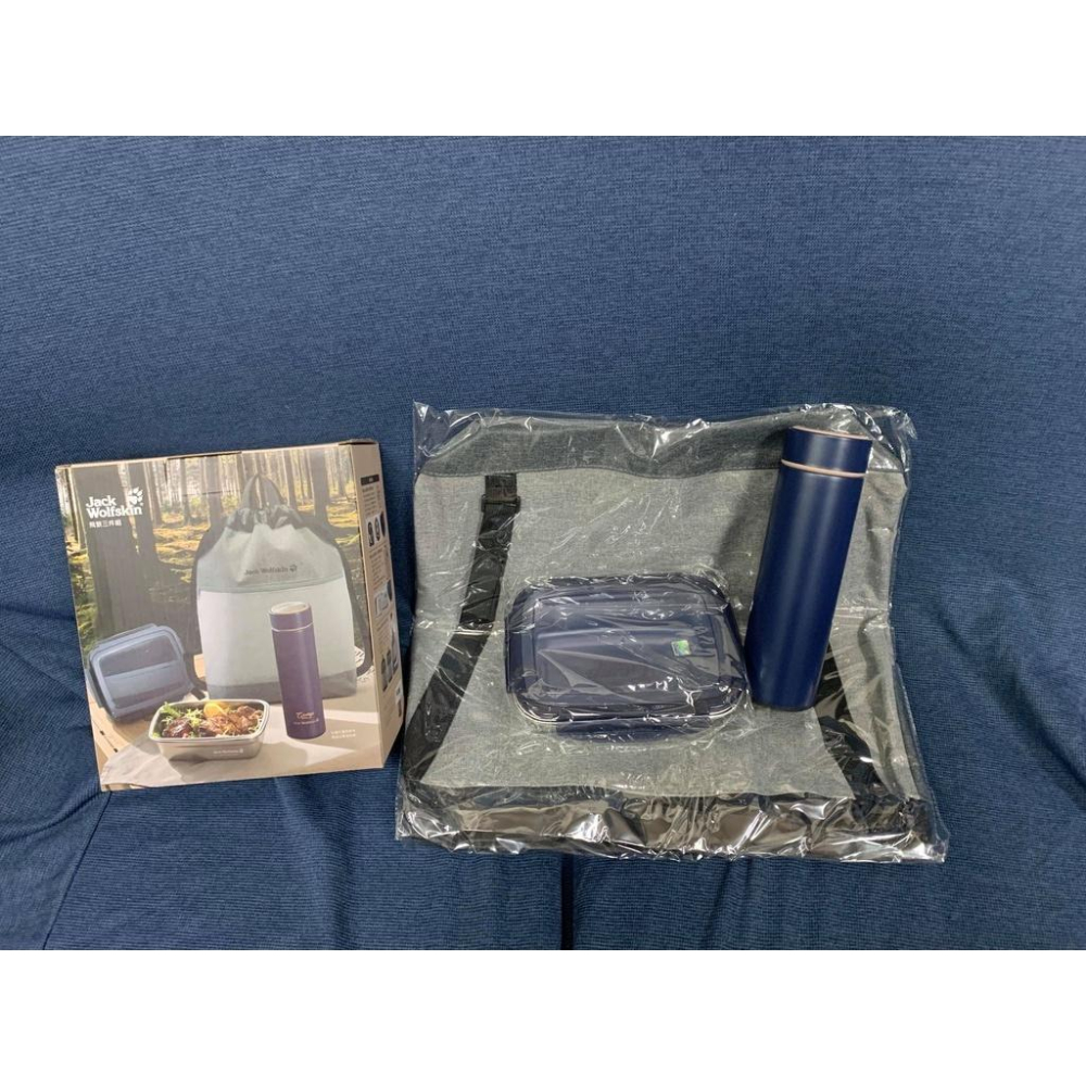 全新 Jack Wolfskin 飛狼Camp戶外野餐三件組 / 不銹鋼保鮮盒 雙色拼接束口後背包 真空保溫瓶